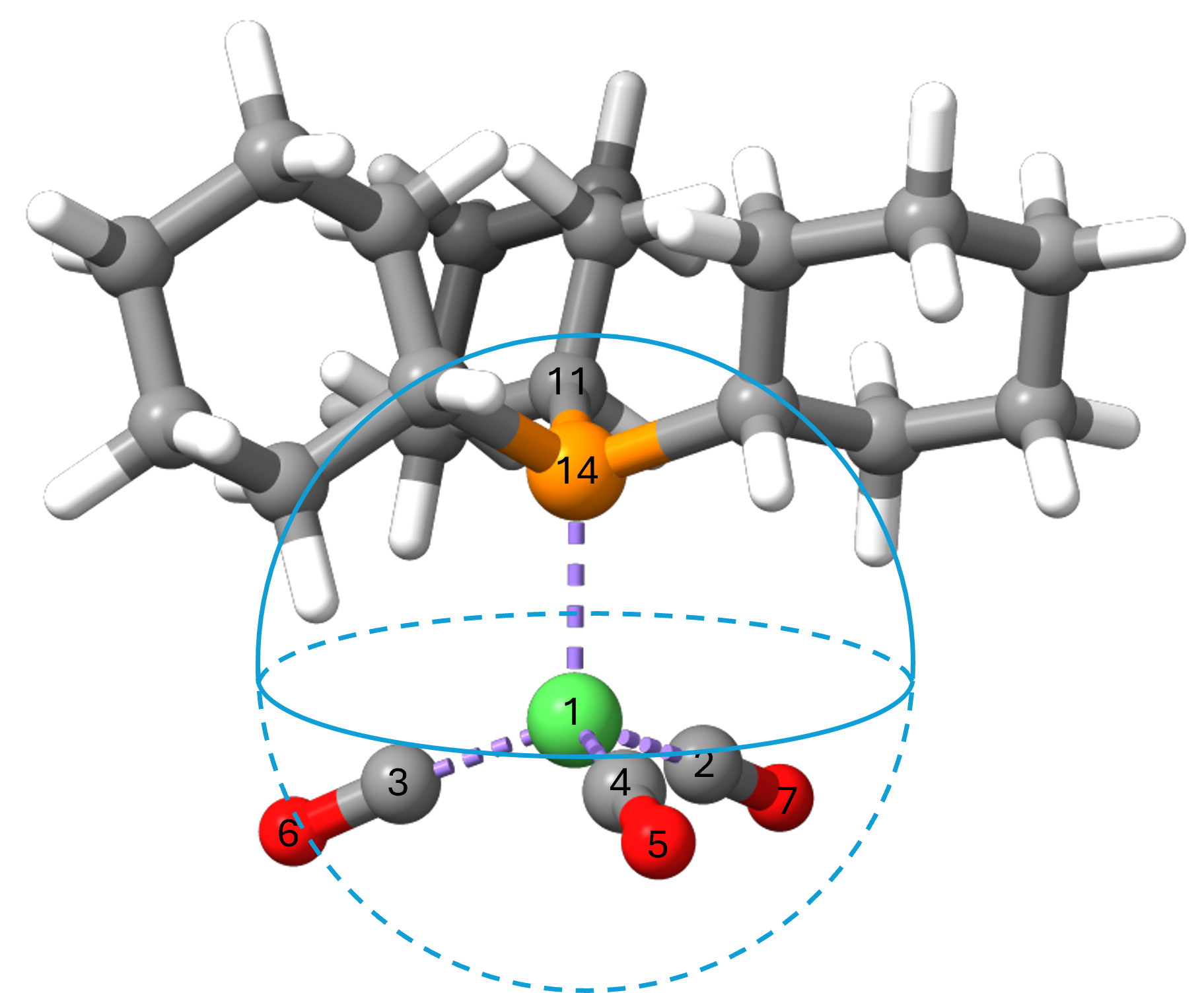 Below is illustrated the buried volume of the phosphine ligand as calculated with